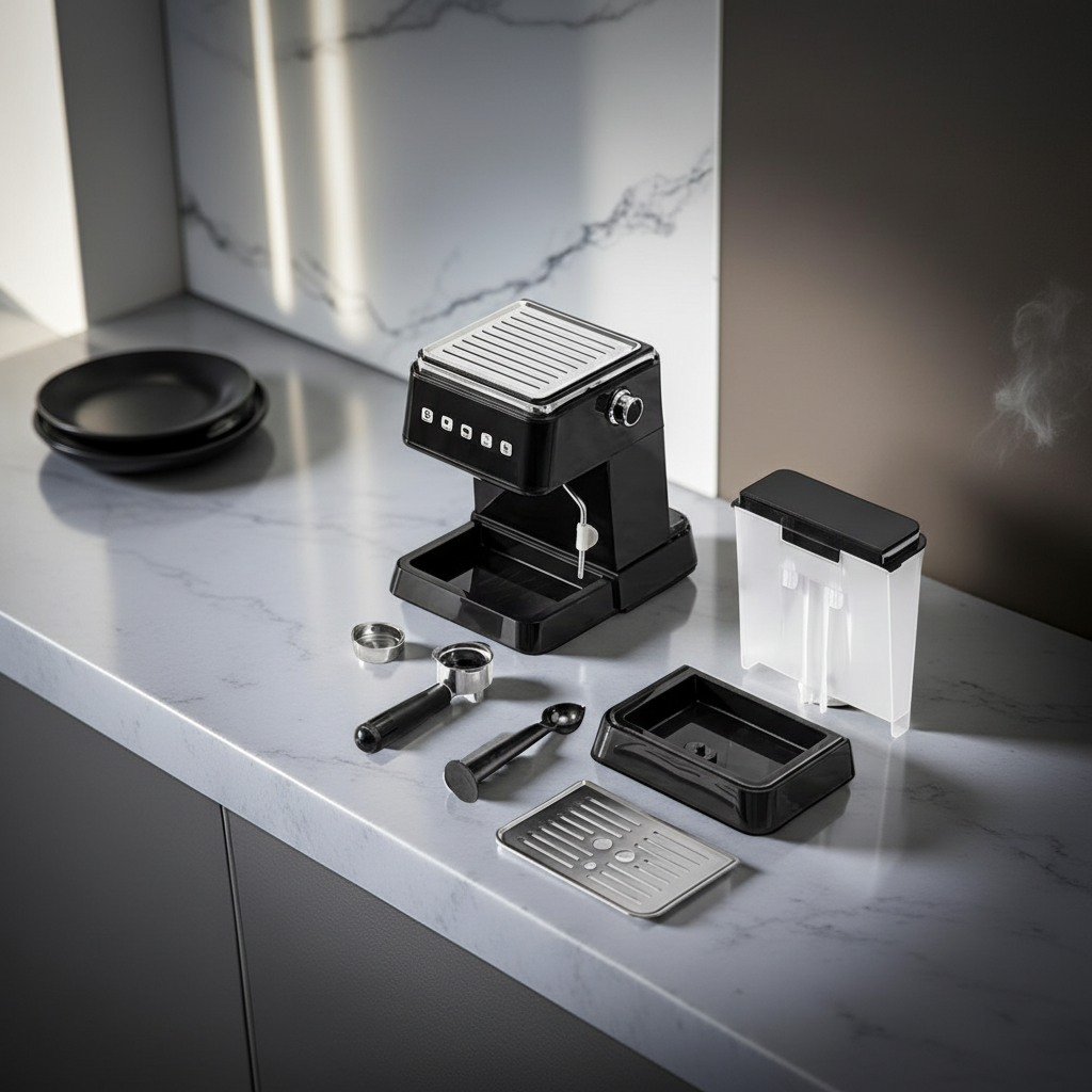 Conçues pour s’intégrer parfaitement dans votre cuisine, nos machines à café allient design compact et gain de place. Élégantes et pratiques, elles vous permettent de préparer votre café préféré tout en gardant votre plan de travail organisé et dégagé. Profitez d’un moment café agréable avec des machines qui combinent qualité, confort et style, sans encombrer votre espace !